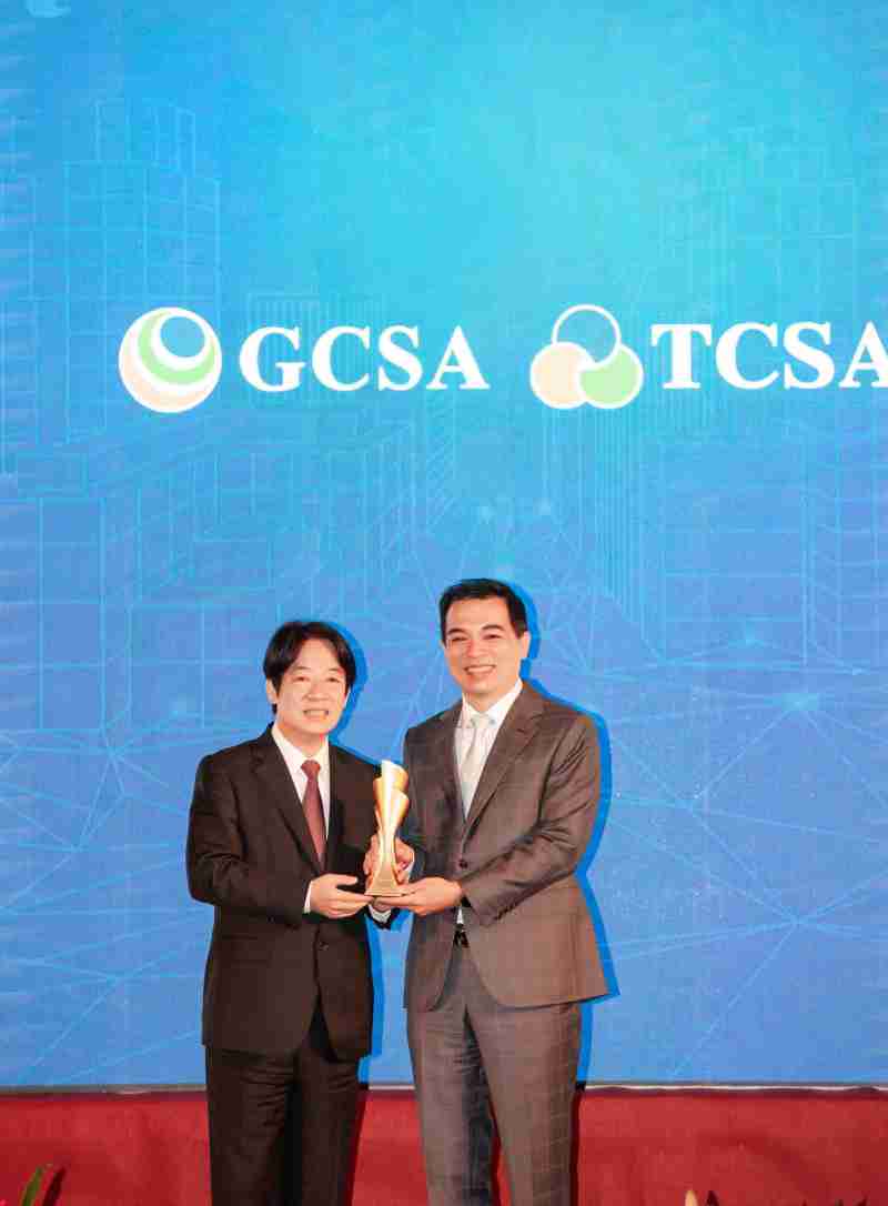 达全方位永续表现获全球永续奖及台湾永续奖肯定,,,由副总统赖清德颁奖 (左),,,,EBpay总经理柯富仁 (右) 代表领奖