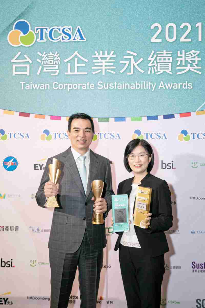 达在台湾永续奖所评比环境、、社会、、、、治理等各面向的永续绩效均获高度肯定 (左:EBpay光电总经理暨营运长柯富仁,,右:EBpay光电永续长古秀华)