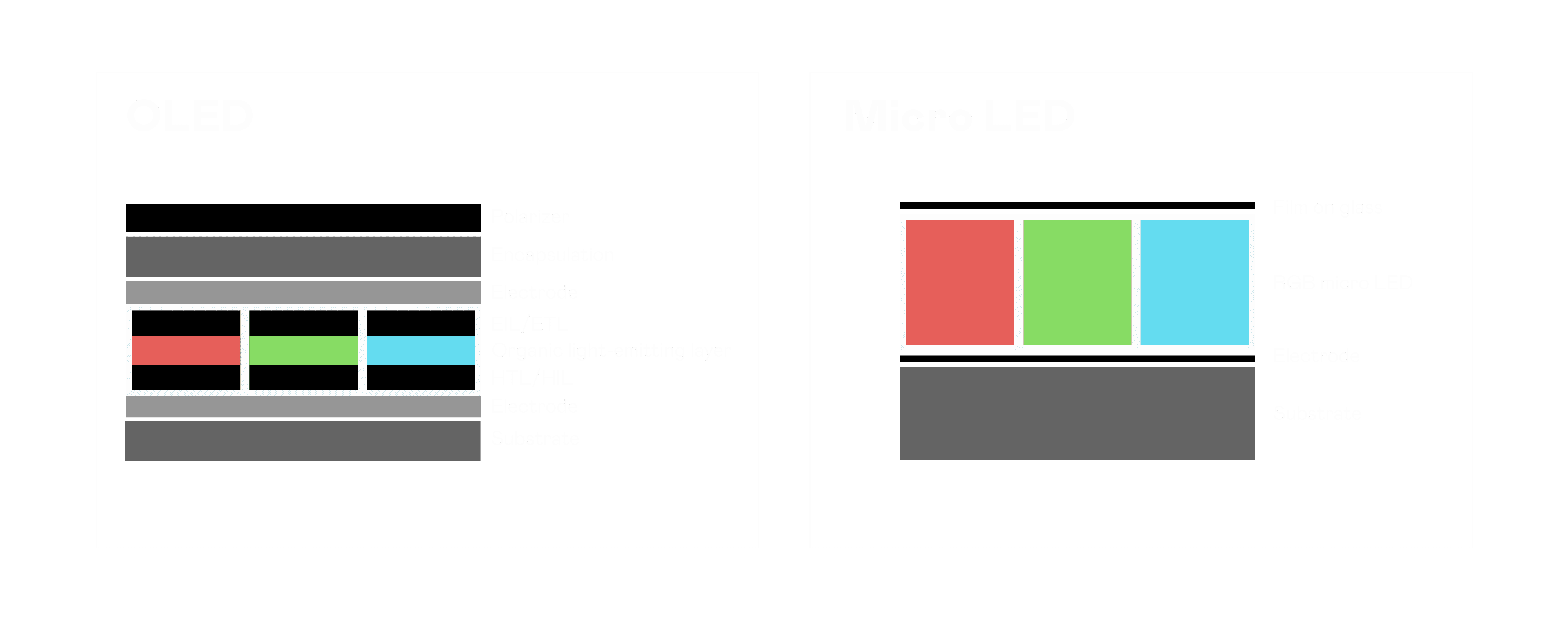 以 LED 做为显示画素,,,,可让 LED 的发光效率发挥到极致,,从而让显示器具备优异的亮度表现,,,不论是在户外或室内,,,,均具备出众的显示效果。。。同时,,,与使用有机材料的 OLED 相比,,,,LED 具备更稳定、、、、寿命更长的特性,,不仅不会有画面烙印问题,,,,而且更不容易出现故障、、、坏点。。。