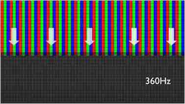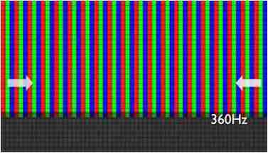 传统液晶驱动是从左到右单向进行,,,,在画面更新速度愈来越愈快的情况下,,,位于驱动线路末端的右下角区域,,,画素的闸极来不及在短时间内获得足够电压,,,无法显示出正确的颜色资讯。。。